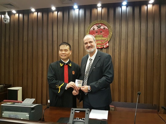 בסיום הדיונים נפגשתי עם השופט מחוץ לאולם וביקשתי להודות לו. בנוסף הענקתי לו מזכרת מישראל מעשה ידיה של אשתי. הסתבר שאני הייתי הזר הראשון שביקר אי פעם בבית משפט זה. השופט היה מאוד אדיב אך חשש לקבל מתנה ושלח את העוזרת המשפטית שלו לשאול את מנהל בית המשפט (שבסין נקרא "קצין בית המשפט") האם מותר לו לקבל מתנה וכשקיבל אישור לכך שמח מאוד. ביקשתי להצטלם איתו ושוב הוא היה נבוך ולא ידע מה לעשות. שוב שלח את העוזרת המשפטית לשאול את קצין בית המשפט, ומשנענה בחיוב לא הפסיק להצטלם עימי בכל מקום בבית המשפט ומחוצה לו.